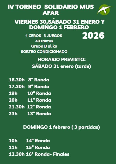 La celebración del IV Torneo de Mus en las caseta municipal de Alcalá de Guadaira, los días 30, 31 enero y 1 de Febrero de 2026, fue todo un éxito, 30 parejas participantes de toda España que a lo largo de todo el fin de semana fueron compitiendo hasta llegar a la pareja ganadora del evento.
